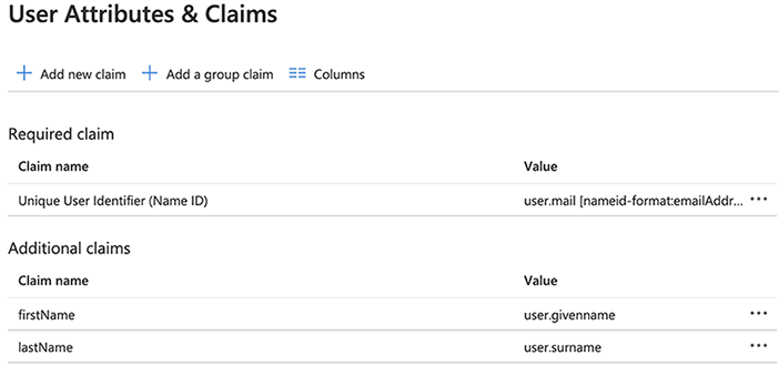 4. Configure the profile claims and Group Attribute Statements as shown in the following: