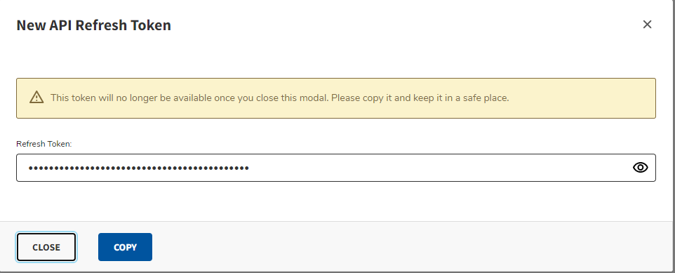 Click Copy to copy the refresh token and then save it to a secure location for future reference.